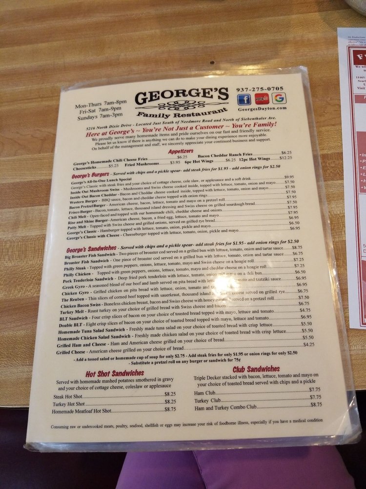 Located in Dayton, OH, George's Family Restaurant embodies the spirit of a classic family diner, serving a delightful mix of Greek, American, and burger favorites. Their extensive menu tantalizes the taste buds, offering everything from hearty breakfast options available all day to sumptuous lunch and dinner dishes.